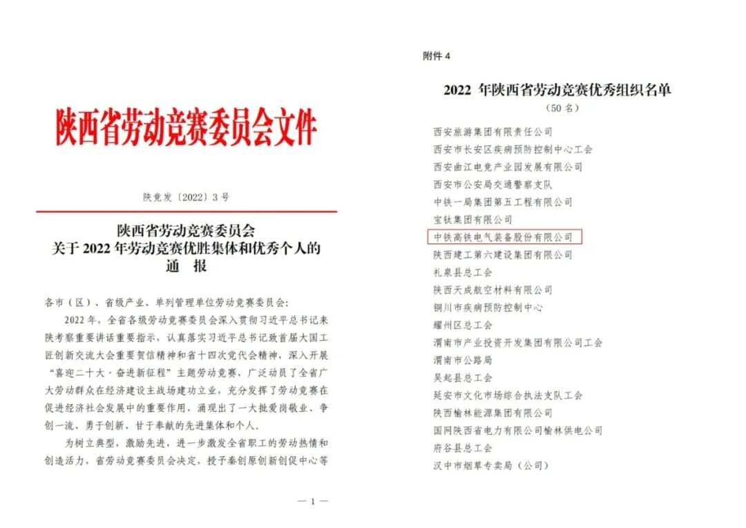喜报!公司荣获陕西省劳动竞赛优秀组织奖