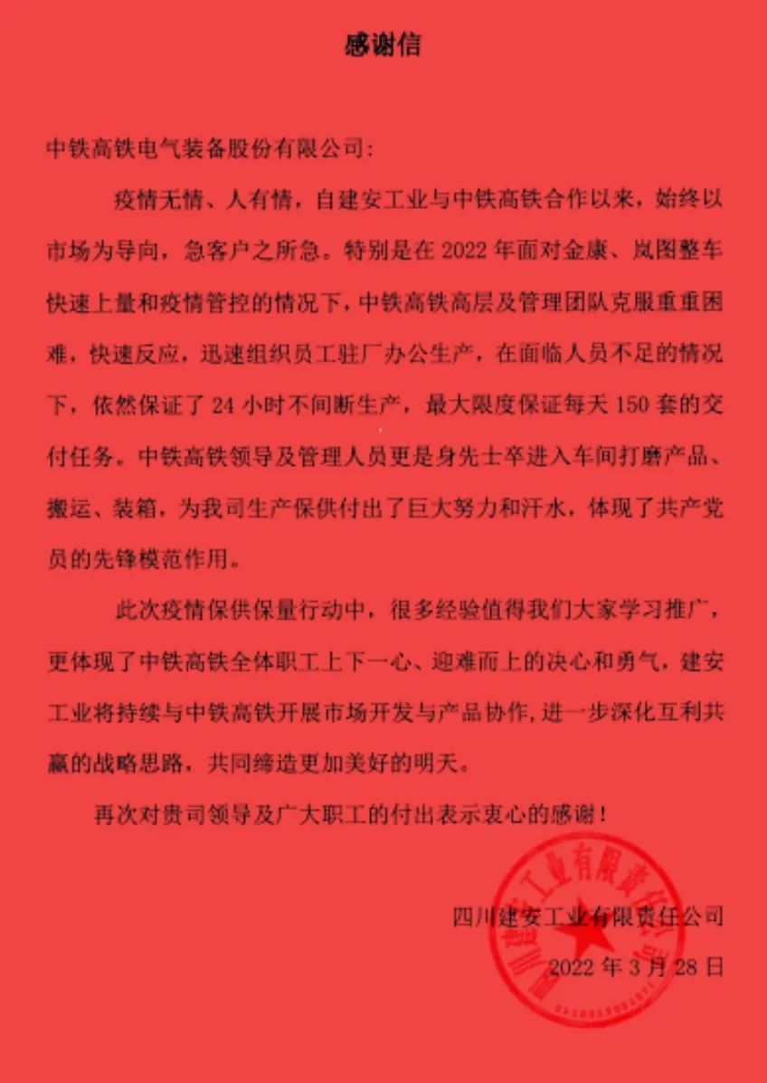 疫情无情人有情丨ok138cn太阳集团收到一封特殊感谢信