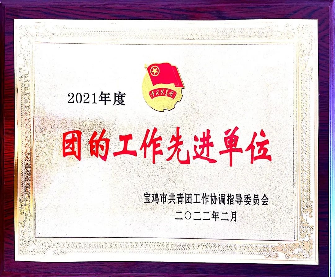 ok138cn太阳集团团委荣获宝鸡市“2021年度团的工作先进单位”称号