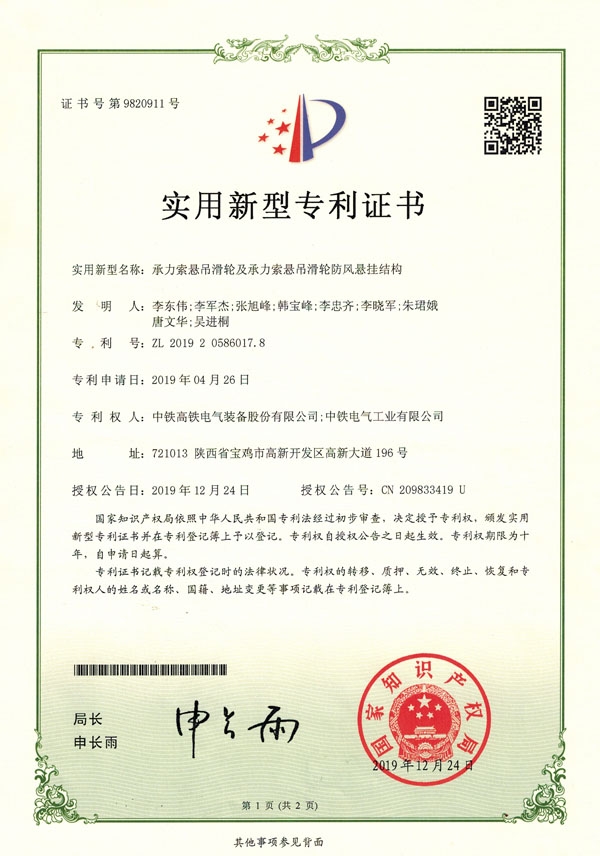 承力索悬吊滑轮及承力索悬吊滑轮防风悬挂结构