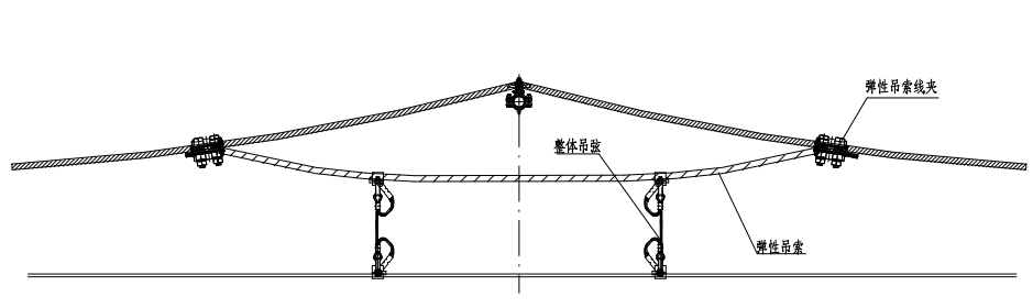 弹性吊索装置用于电气化铁路接触网弹性链型悬挂系统中缩小跨中和悬挂点之间接触网弹